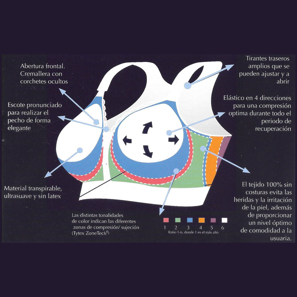 Sujetador postoperatorio de compresión ALTA, diseñado para proporcionar el máximo confort y sujeción tras una cirugía mamaria. Ideal para procedimientos de aumento de pecho, mastopexia, reducción y reconstrucción mamaria. Su ajuste ergonómico favorece una recuperación más cómoda y segura.