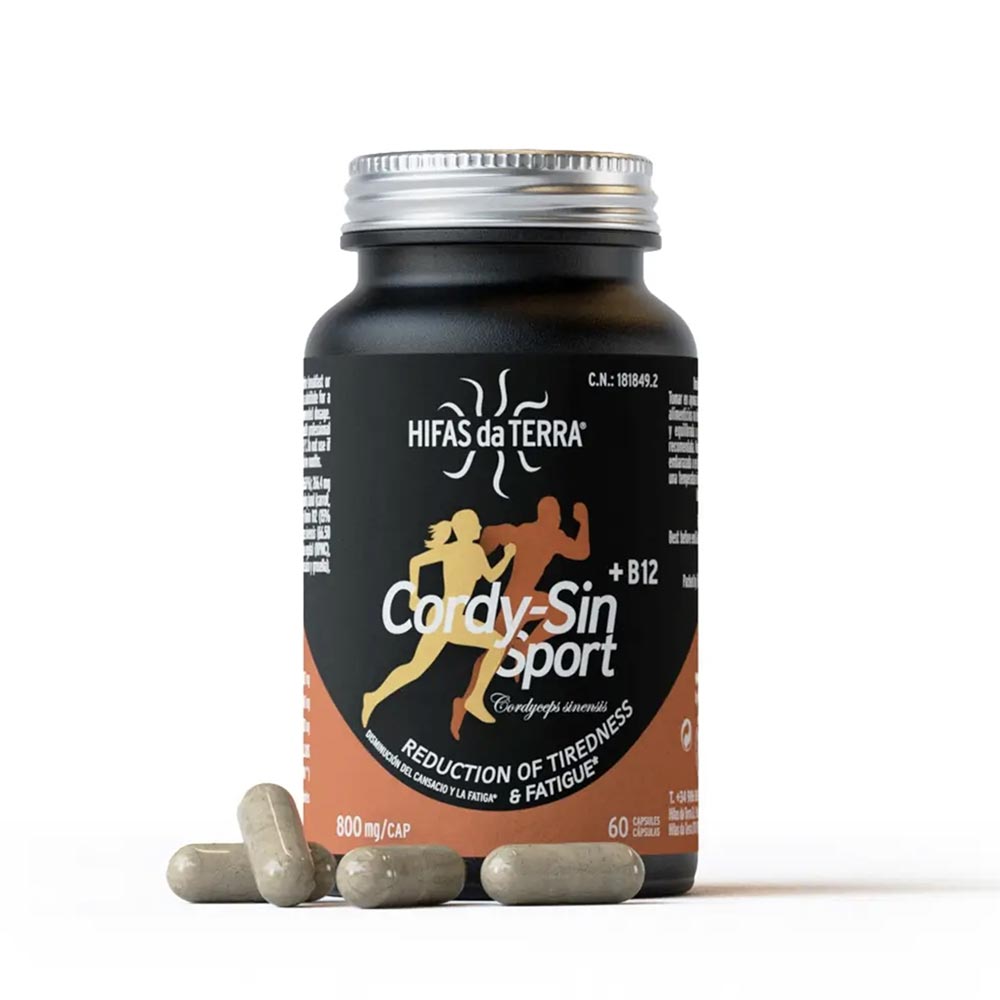 Cordy-Sin Sport es un suplemento en cápsulas formulado con extracto y polvo de Cordyceps sinensis y vitamina B12, diseñado para mejorar el rendimiento deportivo y reducir el cansancio y la fatiga.